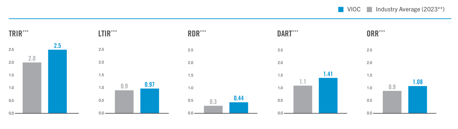 ***Total Recordable Incident Rate (TRIR); Lost-time Incident Rate (LTIR); Restricted Duty Rate (RDR); Days Away, Restricted, or Transferred (DART); Other Recordable Rate-Treatment other than first aid but not restrictions or lost time (ORR).